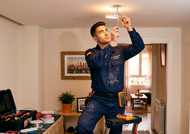 Todos nuestros trabajos se realizan por electricistas certificados, utilizando materiales homologados y cumpliendo la normativa vigente en la Comunidad de Madrid. Cada reparación cuenta con garantía, porque la seguridad eléctrica no admite improvisaciones.